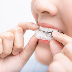 薬剤入りのマウスピースを歯に装着し、所定の時間使用します。